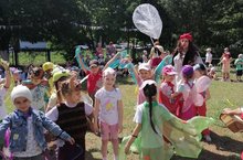Радостно, звонко, тепло и красочно прошёл сегодня главный праздник детства – День защиты детей в нашем детском саду. Вместе с Бабой Ягой и девочкой Веселушкой дети с большим интересом участвовали в играх, необычных эстафетах, прыгали в мешках, танцевали и принимали участие в флешмобе.