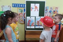 В детском саду продолжаются мероприятия по противопожарной безопасности. Воспитанники средней группы «Ягодка» в процессе игр знакомились с обмундированием пожарного, с правилами поведения на пожаре. Дети старшей группы «Родничок» закрепили знания о причинах возникновения пожара, отобразив это в инсценировке сказки С. Маршака «Кошкин дом».
