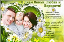 В этот день прекрасный, День семьи и верности, поздравляем всех с праздником! Желаем вам хранить очаг и не позволять ему гаснуть. Любви и взаимопонимания, терпения и удачи, счастья и благополучия, добра и улыбок! Храните семейный уют и тепло, любите друг друга и дарите нежность.