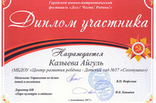 Муниципальное бюджетное дошкольное образовательное учреждение «Центр развития ребенка - детский сад №57 «Соловушка» г. Альметьевска»/ Әлмәт шәһәре "Баланың сәләтен үстерү үзәге 57нче "Сандугач" балалар бакчасы муниципаль бюджет мәктәпкәчә белем бирү учреждениесе"