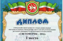 Поздравляем коллектив МБДОУ "ЦРР-д/с № 57 "Соловушка" с I местом в городском смотре-конкурсе среди ДОУ АМР РТ по предупреждению детского дорожно-транспортного травматизма "Светофорик - 2016".