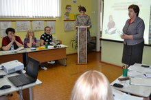 Педагог-психолог Ж.В. Запускалова, руководитель творческой группы «Социально-коммуникативное развитие», сообщила о ходе и правилах педагогического совета: представлено 3-и теоретических лота и 11 практических, которые необходимо оценить с помощью фишек разного цвета.