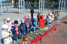 08.05.2015г. педагоги МБДОУ «ЦРР – д/с № 57 «Соловушка» организовали экскурсию с детьми старшего дошкольного возраста в «Городской парк культуры и отдыха им. 60-летия нефти Татарстана» с целью возложения цветов к мемориальному комплексу Вечный огонь, который напоминает нам о погибших в те далёкие годы молодых ребят и девушек, о тех, кого уже нет с нами, но они вечно будут жить в нашей памяти! Низкий им поклон за мирное небо, яркое солнце, за тишину и ЖИЗНЬ на Земле!