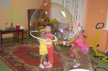 Дошколята были рады встречи с актерами развлекательной программы «Шоу гигантских мыльных пузырей», которые подарили детям радость и удовольствие. Участие в данном шоу позволило детям на 1 минуту прожить жизнь мыльного пузыря.