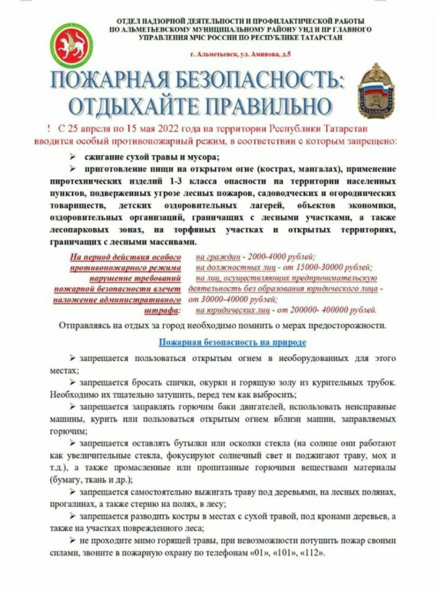 ПАМЯТКА "Пожарная безопасность. Отдыхайте правильно"