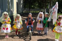 Поздравляем всех с веселым праздником Сабантуй! Это самый любимый , самый –народный праздник. Он проводится после окончания весеннее- полевых работ. На этом празднике люди соревнуются в силе, ловкости. И в нашем детском саду прошел веселый праздник Сабантуй!