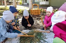 Сегодня дети логопедической группы познакомились с тем как убирали урожай зерновых культур с помощью серпа в старину в России. А также принимали участие в молотьбе, отделяя зёрна от колосьев.