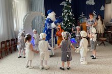 На этом волшебном празднике все детки 2 младшей группы нарядились в зайчиков. С самого начала представления сказочные герои увлекли детей в волшебный мир сказки. Дети смогли окунуться в праздничную атмосферу, и вместе с Дедом Морозом, Снегурочкой и Лисой ребята играли в игры, танцевали вокруг елки, рассказывали стихи. Дед Мороз щедро наградил каждого зайчонка подарком. В конце меропрития дети с огромным удовольствием фотографироались с персонажами возле елочки.