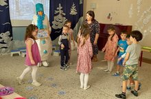 Прошли праздники, но сегодня мы вновь окунулись в новогоднее волшебство: пели, танцевали и водили хоровод вокруг елки. Дети снова окунулись в праздничную атмосферу, попращались с елочкой и пообещали снова ждать ее в гости.