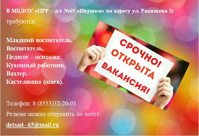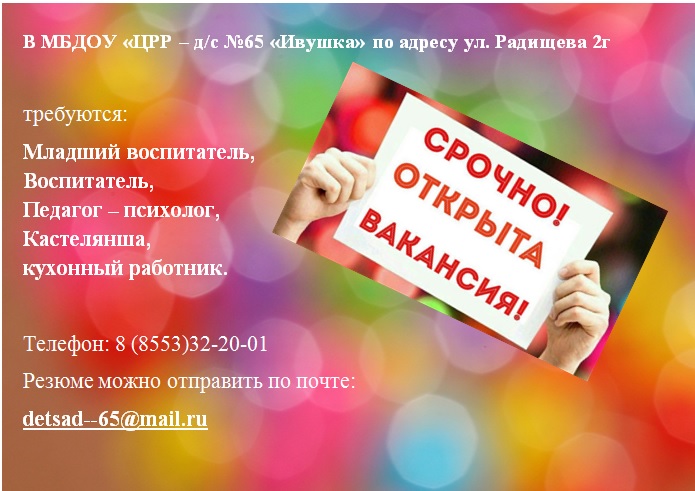 Короткое название: | МБДОУ "ЦРР - д/с №65 "Ивушка" |