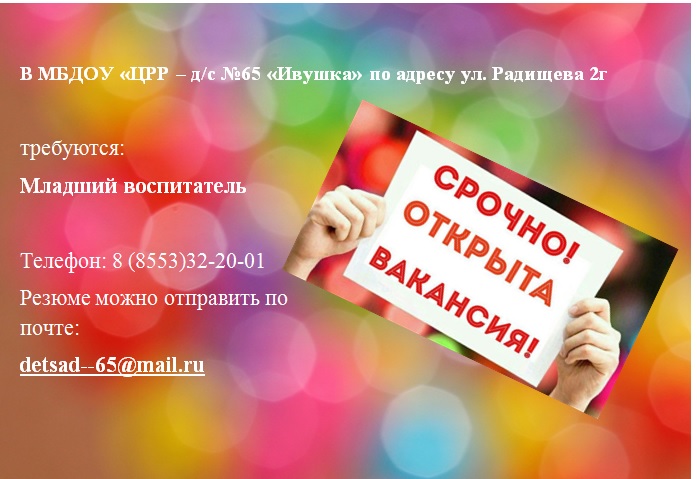 Короткое название: | МБДОУ "ЦРР - д/с №65 "Ивушка" |