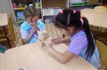В подготовительной к школе грппе №7 "Росинка" воспитанники при проведении образовательной деятельности научились измерять объем сыпучих веществ, устанавливать время на макете часов, вычислять время выпечки от количества муки, самостоятельно выбрали меру для измерения (столовая и чайная ложка).