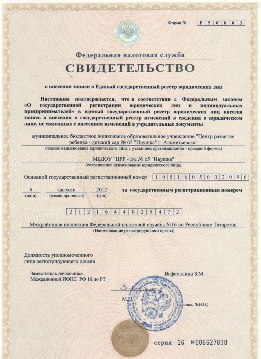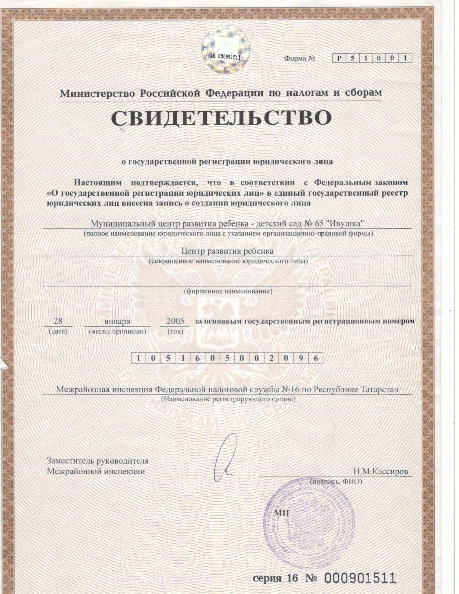 Короткое название: | МБДОУ "ЦРР - д/с №65 "Ивушка" |