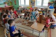 Сегодня дети младшей группы № 10 инсценировали сказку "Теремок". В ходе игры-драматизации дети закрепили слова на татарском языке: заяц, медведь и познакомились с новыми словами: мышка, лягушка, лиса, волк.