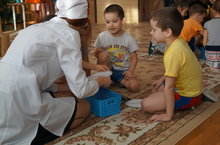 Сегодня в нашем детском саду педагог-психолог ГАПОУ "Альметьевского медицинского колледжа" Хасаншина А.И. и студенты групп СД-15А, 15Б, 15В организовали с детьми подготовительной к школе группы театрализованное представление по сказке "Айболит". Сказка проведена в увлекательно-игровой форме в соответствии с возрастными особенностями детей дошкольного возраста, была эмоционально насыщена. пополнила багаж знаний о профессиях фельдшера, медицинской сестры, фармацевта.