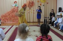 С листопадом и дождем, с перелетным журавлем пришла к нам в детский сад Осень! Меньше солнца, меньше света, больше дождей. Впрочем, кто-кто, а наши дети думают ведь об этом меньше всего. Они просто радуются каждому дню, пусть он и осенний. Первыми встречали Осень младшие группы.Вместе с ней они пели ,играли , рассказывали ей стихи.Ну а она их угощала своими щедрыми подарками!