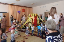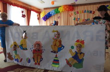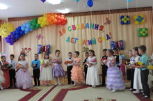 В этом году мы выпускаем в школу семь групп! Сегодня прошел первый утренник. С детским садом прощались дети национальной группы. Детей ждал сюрприз - родители показали им сценку про школу.