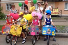 Дети ДОУ №22 приняли участие в массовом городском велозаезде. Они представляли героев - отважных щенков из мультфильма «Щенячий патруль». На дороги города вышел отряд спасателей: Пожарный Маршал, полицейский Гонщик, спасатель Скай, мастер Рабл.
