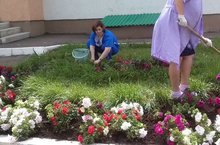 Сегодня наши сотрудники вышли на экологический субботник. Они стригли кустарники, пололи газоны и цветники, рыхлили цветы.