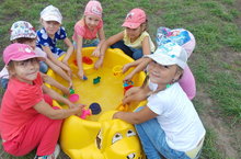 Как хорошо летом! Наши дети любят играть в песочнице, с водой в бассейне!
