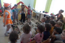 Русскоязычные дети подготовительной группы №13 показали сказку «Теремок» на татарском языке для детей старших групп.