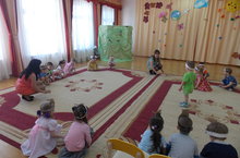 Прошел весенний утренник в средней группе №9. Дети помогали освободить солныщко, которое проглотил крокодил!