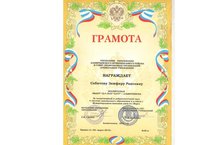 Воспитатель Сабитова Земфира Раисовна награждена грамотой от Управления Образования за плодотворный и добросовестный труд в системе дошкольного образования.