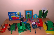 В фойе детского сада организована выставка поделок, посвященных Дню защитника Отечества.