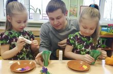 Наступила весна, в первую неделю весны в детском саду проходят самые нежные и милые утренники, которые посвящены нашим самым родным и дорогим мамам, бабушкам, сестричкам. Чтобы поздравить их милыми подарочками наши папы провели мастер-классы для дошколят по изготовлению поделок. Мастер-классы с папами и мамами прочно вошли в жизнь детского сада. А уж подарки на 8 Марта сделаны с большим желанием, и каждый цветочек несет частичку тепла и любви. На мастер-класс в этот раз отважились папы Соломонов Александр Сергеевич и Фадеев Михаил Иванович в группе Любознайки, Нургатин Марат Галлямович в группе Непоседы, Смоленков Андрей Анатольевич в группе Затейники, Маняшкин Сергей Александрович в группе «Радуга»