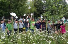 Закончился первый месяц лета. Весело проводит время детвора в детском саду. Прогулка – основной режимный момент летом, занимает основную часть дня. Сколько нового можно узнать, если проводить наблюдения. Наблюдать за погодой, природой, как расцветают цветы, ползают насекомые, летают бабочки. На территории сада созданы все условия для познавательной активности и наблюдений. Воспитанники могут понаблюдать, как на яблонях появляются яблоки в яблоневом саду. На ягодной полянке созревание лесных ягод – клубники. Каждый прогулочный участок оформлен красивой клумбой, на которой растут и ранние весенние, и многолетние, и цветы посеяны семенами в грунт и рассадой. Июнь это такой месяц – когда еще доцветают весенние цветы (это и ветренницы, тюльпны, нарциссы, ирисы, сирень) и распускаются пионы, которые наполняют воздух ароматом, вербена, ромашки, лимонник и гвоздики. Появляются первые цветы петуньи, высаженной рассадой. Зеленеют кустики бархоток, настурций посеянных семенами. Наблюдая и ухаживая за цветами дети приобщаются к миру прекрасного, учатся беречь природу, приобретают трудовые навыки – поливать и рыхлить, совмещают понятия хорошего ухода и обилия цветения.