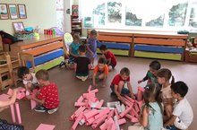 Лето в этом году переменчивое, то яркое солнце светит, то вдруг сильный ветер с дождем. Но независимо от погоды наши дошколята с пользой проводят время, фантазируют, придумывают новые игры. Как оказалось из обычных листов бумаги и при помощи степлера можно сделать своеобразный конструктор. Пока сконструировали самые простые обьемные тела: призмы разной длины; цилиндры, разные по длине и толщине. Затем построили необычные постройки. Что примечательно, для такого конструктора можно использовать бумагу, исписанную с двух сторон, и прежде чем сдать ее в макулатуру, можно еще и построить из нее башни, дома и вообще что придет в голову.