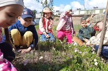 Лето прекрасная пора. Погода на прошлой неделе не баловала нас ярким солнышком, но не беда. Прогулка каждый день с пользой для здоровья как физического, так и эмоционального, это и наблюдения, и игры, и чтение сказок. Очень здорово, когда территория детского сада такая зеленая, и можно наблюдать за растениями, цветами, насекомыми. У нас есть лес, в котором березы и липы. Липа как раз на этой неделе зацвела и запах липового цвета повсюду. Березы, сосны, ели, маленький, набирающий силу каштан, который в том году мы обменяли на собранные батарейки в Департаменте экологии. А еще много разных цветов на клумбах, и свой огород на котором растут кабачки, перец, помидоры и много всего. Мы не только наблюдаем, любуемся, но еще и поливаем, убираем сорняки и рыхлим землю на клумбах, чтобы территория сада была ухоженной и красивой. А какая прогулка без подвижных игр. Подвижная игра – это самое главное для физического развития дошкольника. А еще есть очень увлекательная игра с балансиром. Можно стоя балансировать и развивать координацию, можно играть. А можно помочь и младшим дошкольникам попробовать на балансире, поддержать.