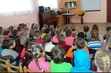 В рамках реализации УМК регулярно в музыкальном зале детского сада организован просмотр мультфильмов и анимационных сюжетов на татарском языке. После просмотра проходит обсуждение. Дети отвечают на вопросы педагога, повторяют диалоги.