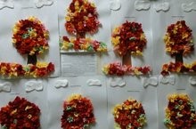 Воспитатель Хамзина А.М. воспитывала у детей любовь к осенней природе. Дети составили композицию из осенних деревьев.