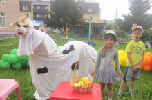 8 июля 2015 года проведено театрализованное представление с детьми старшего дошкольного возраста по мотивам русской народной сказки в обработке В.Даля "Война грибов и ягод". Дети окунулись в мир сказки, показали свои артистические способности, певческие навыки, коллективные действия. Поддерживать интерес к сказке помогли и родители: изготовили костюмы для детей, шапочки к каждому персанажу.