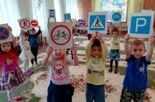 Юные участники дорожного движения рассказывали стихи, разгадывали загадки, рассказывали о дорожных знаках, рассматривали плакаты, играли в игры «Зеленый огонек», «Три сигнала светофора», «Разрешается – запрещается», «Собери знак». Дошкольники справились со всеми предложенными заданиями на отлично.
