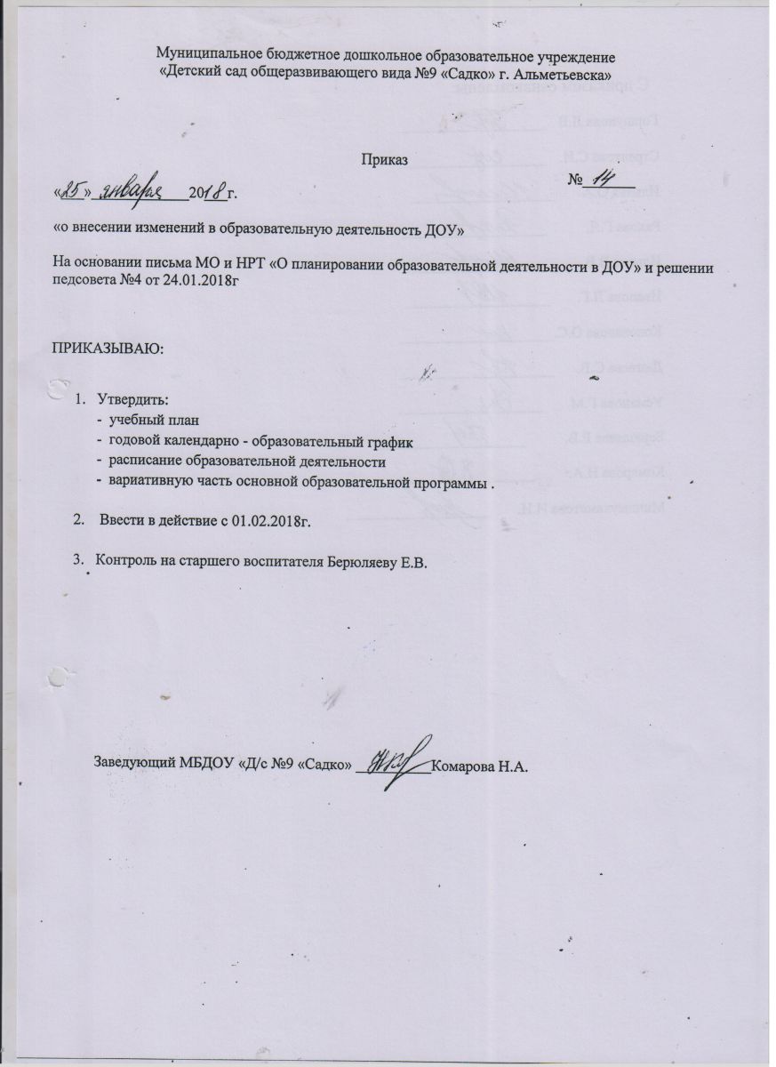 Приказ "О внесении изменений в образовательную деятельность ДОУ"