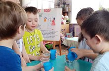 В Международный День воды в нашем детском саду прошли викторины, беседы, эксперименты, игры, просмотры презентации «Волшебница вода». В ходе обсуждения дети работали с картами и глобусом, вспомнили как много воды на нашей планете, сколько места занимает вода, а сколько – суша, что дождь, град, снег, росы, пар, сосульки, туман — это тоже вода, только в различных своих состояниях.