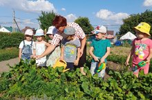 Дети учатся владеть инвентарём, знакомятся с ростом и развитием различных огородных культур. Чтобы интерес к огороду не пропадал у детей в течение всего лета, воспитатель ежедневно вместе с детьми просматривает, что нового на грядках: появились всходы, зацвели огурцы, у гороха длинные усики ищут подпоры.