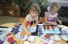 1) Белем бирү өлкәсе: Нәфис-нәфасәти үсеш: «Көзге урман» (кисеп ябыштыру элементлары белән рәсем ясау) (зурлар төркеме)