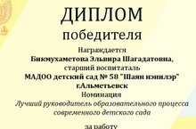 Поздравляем старшего воспитателя нашего детского сада Бикмухаметову Эльвиру Шагадатовну с Дипломом победителя!