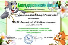 Благодарственные письма "Международный конкурс "Младшие друзья"" 28.01.2015