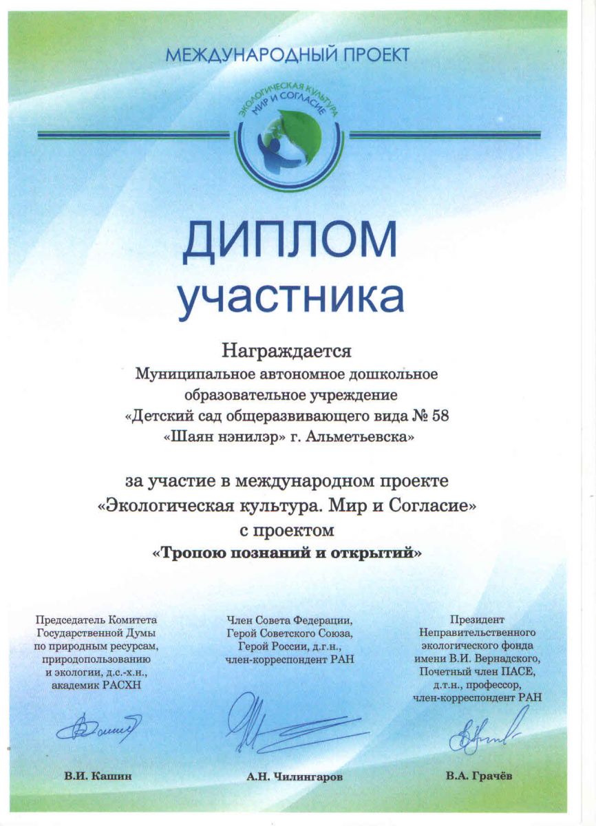 Муниципальное бюджетное дошкольное образовательное учреждение «Детский сад общеразвивающего вида № 58 «Шаян нэнилэр» Альметьевского муниципального района Республики Татарстан»//«Татарстан Республикасы Әлмәт муниципаль бюджет мәктәпкәчә белем бирү учреждениясе 58 нче гомумүстерешле төрдәге «Шаян нэнилэр» балалар бакчасы»