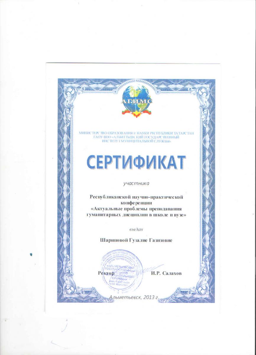 Шариповой Г.Г. за участие в конференции