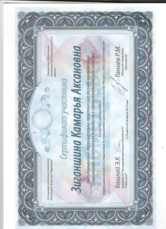"Сертификат участника Зиганшиной К.А."