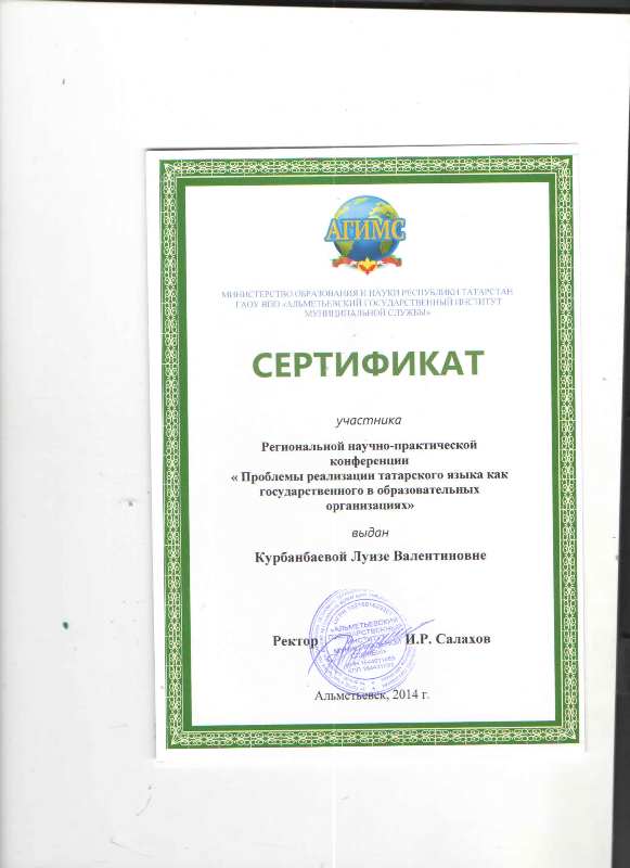 "Сертификат Курбанбаева Л.В."