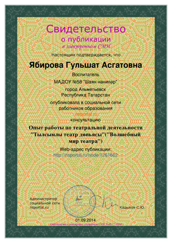 Муниципальное бюджетное дошкольное образовательное учреждение «Детский сад общеразвивающего вида № 58 «Шаян нэнилэр» Альметьевского муниципального района Республики Татарстан»//«Татарстан Республикасы Әлмәт муниципаль бюджет мәктәпкәчә белем бирү учреждениясе 58 нче гомумүстерешле төрдәге «Шаян нэнилэр» балалар бакчасы»