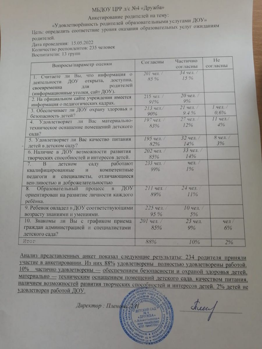 Анализ работы МБДОУ ЦРР д/с №4 "Дружба"