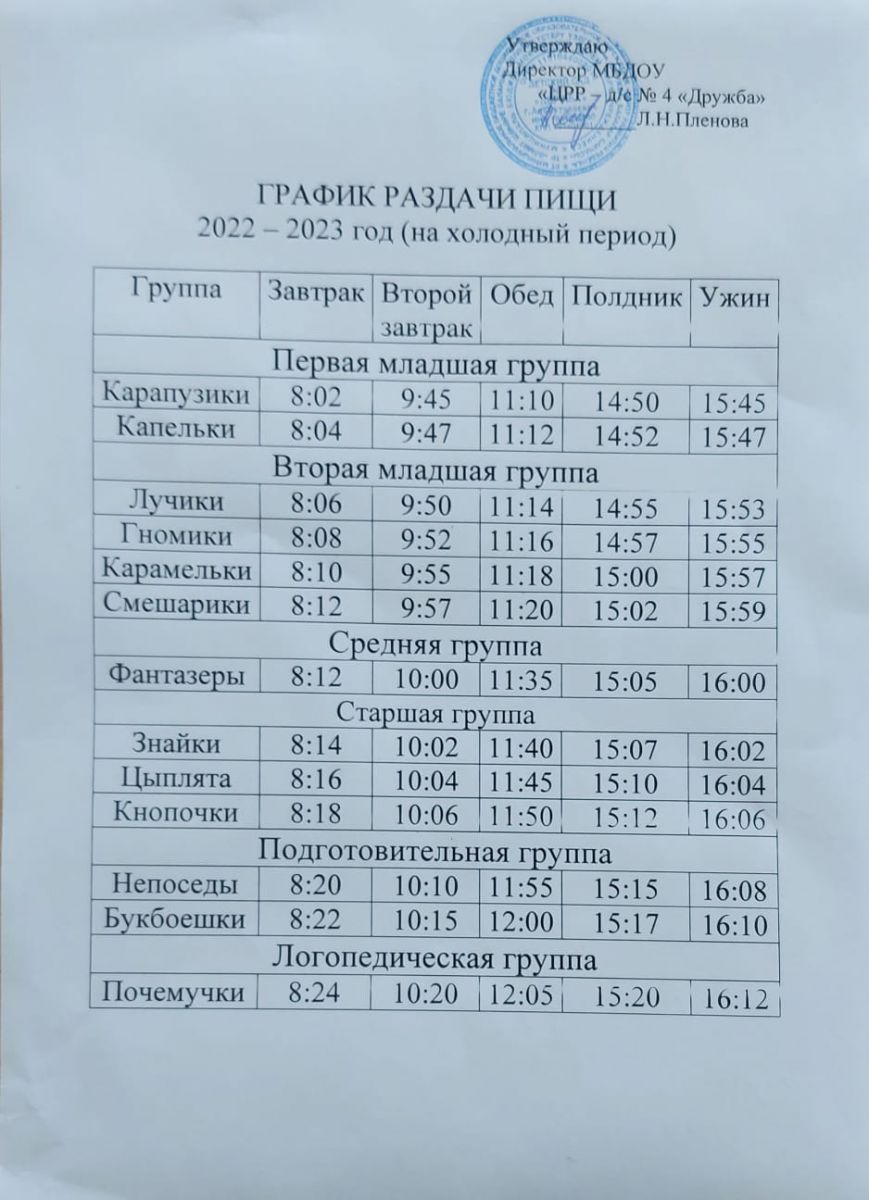 Диетическое питание в МБДОУ "ЦРР - д/с №4 "Дружба" отсутствует