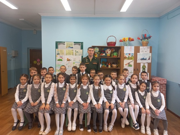 Встреча учащихся 1б класса с заместителем начальника штаба мотострелкового батальона капитаном Гариповым И. С.